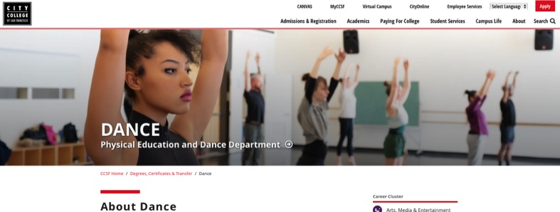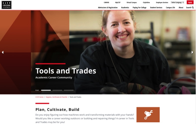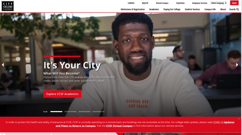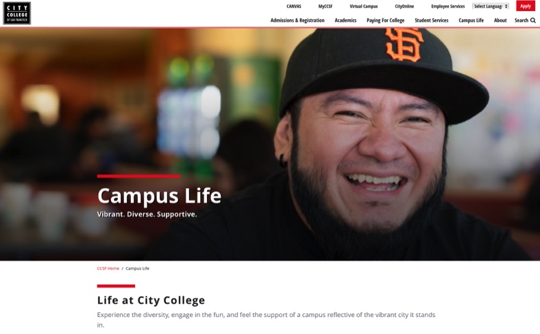 CCSF is where young folks go to make their dreams real. FreeCity provides their education at no charge and the staff are devoted to their students. Happy to help with their new website. https://www.ccsf.edu