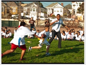 Nice partnership between the United Way and the National Football League. Oakland Raider Nnamdi Asomugha led a group of teammates and volunteers from UPS to raise awareness about obesity, healthy eating and activity. UWBA put up a nice selection of photos on their blog.