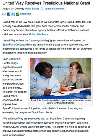 I shot a training session and meeting for UWBA’s SparkPoint Center recently and really liked the shots we got. The United Way of the Bay Area just received a capacity building grant from President Obama’s call to service initiative “United We Serve” and wrote about it in their blog with another of my photos.